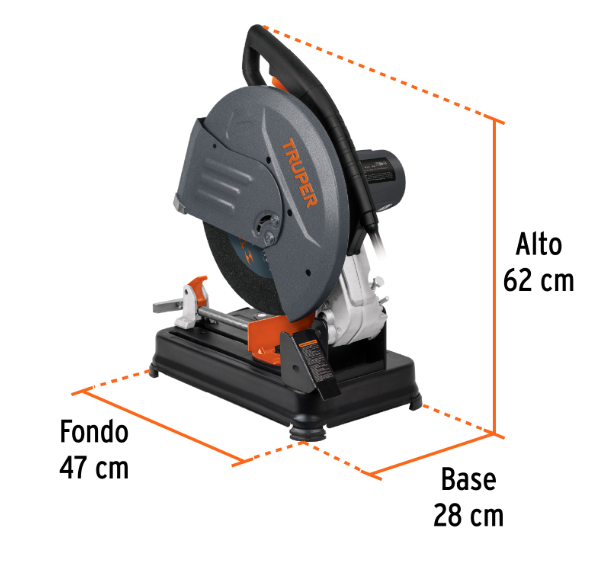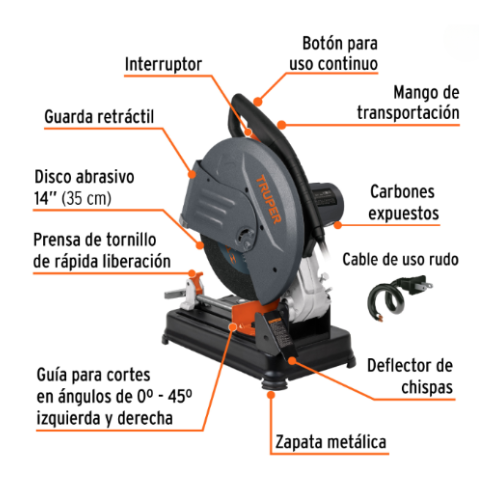 - Diámetro de disco de 14″ para mayor capacidad de corte.